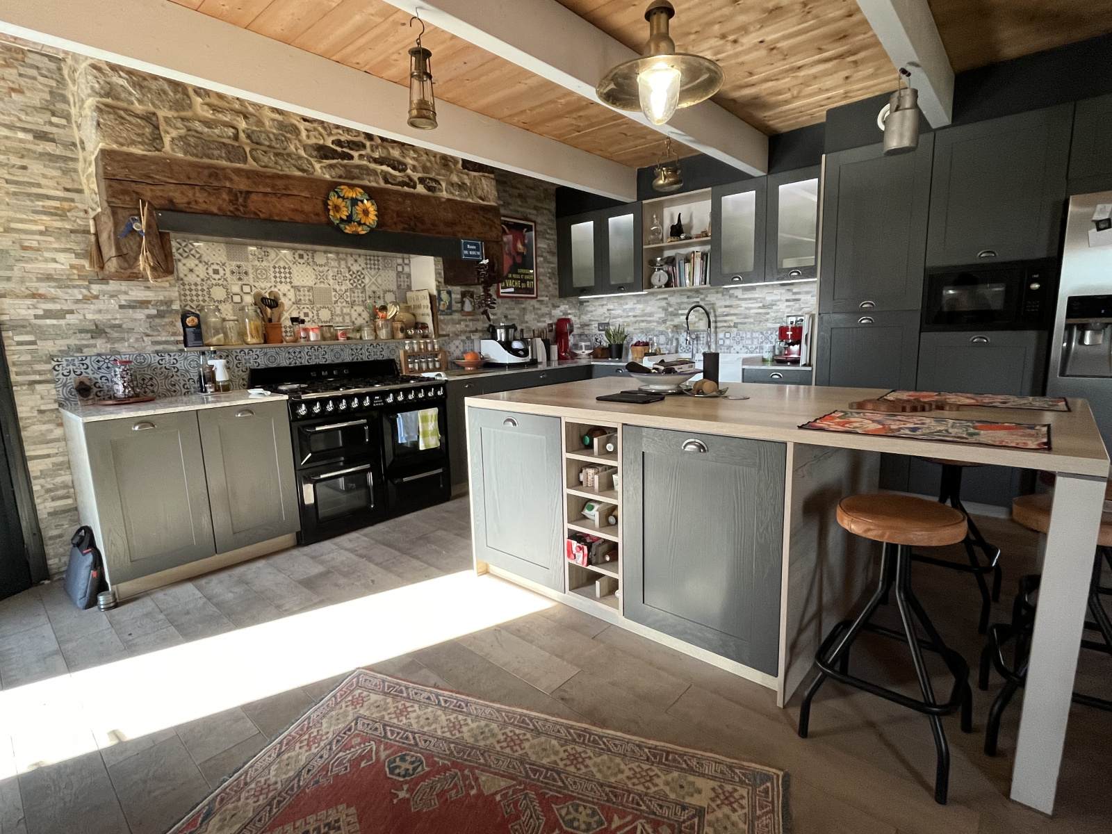 La maison principale offre une belle pièce de vie avec cuisine aménagée-équipée ouverte sur le salon-séjour avec cheminée ainsi que 4 chambres, dont deux avec salles d'eau privatives.
